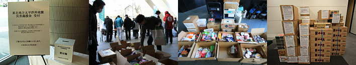 そして、今回は受付にて義捐金の募金と、被災地へ送る救援物資の収集を行いました。