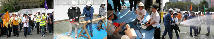 チェーンソーや削岩機の取り扱い訓練、応急処置訓練、AEDの取り扱い方法の説明などに、みなさん熱心にご参加されました。