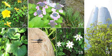 開発前からこの地にあったクチナシの花の芳醇な香りが、訪れる人に心地よい安らぎを与えてくれます。毛利池周辺では、赤色や青色のトンボが飛び回っています。