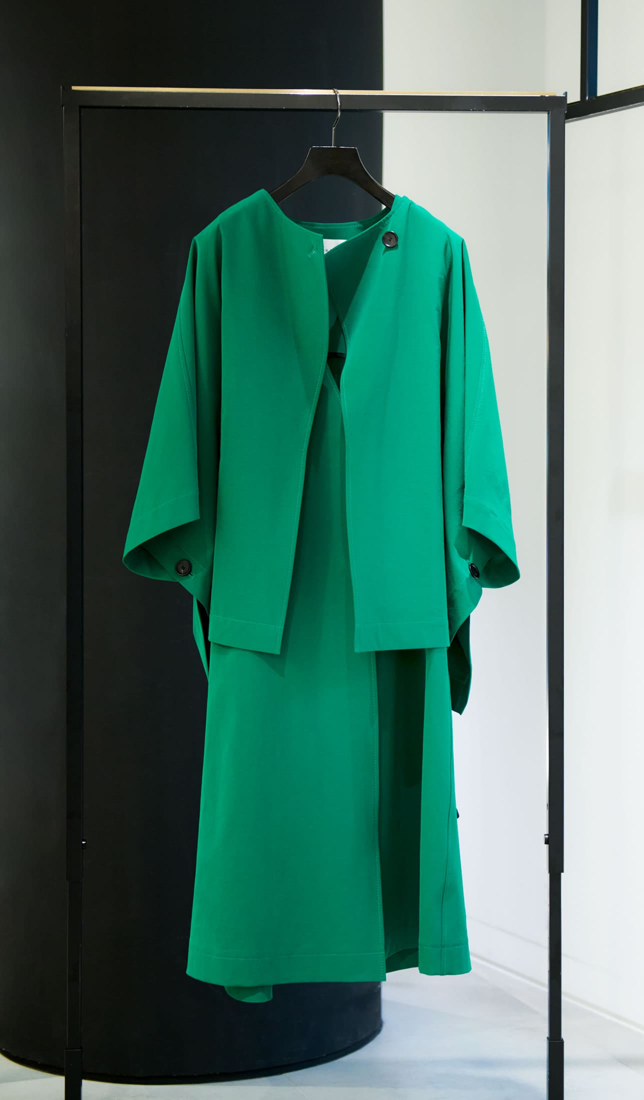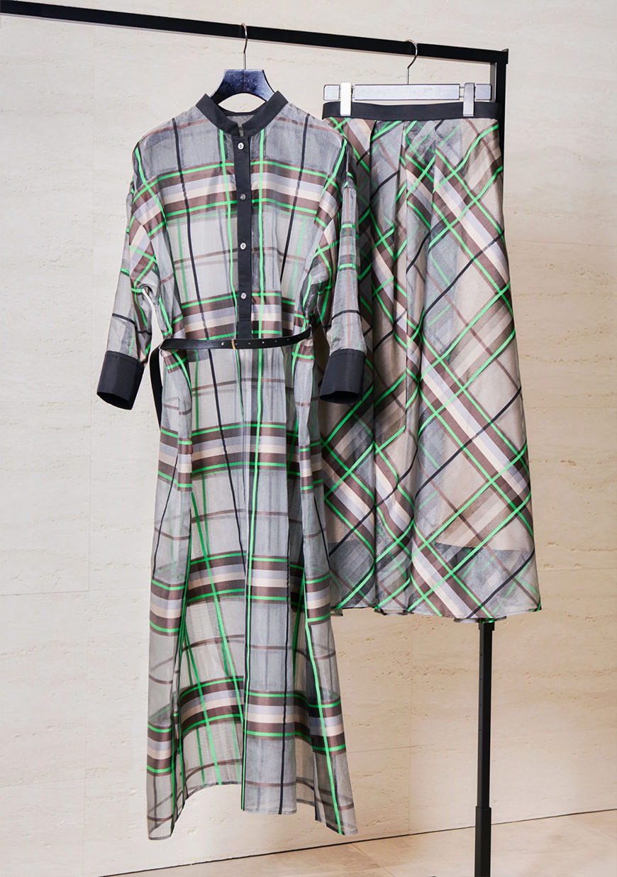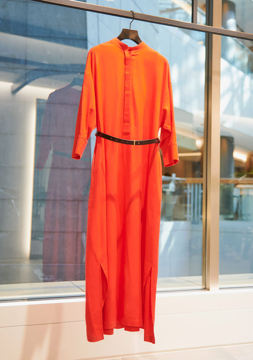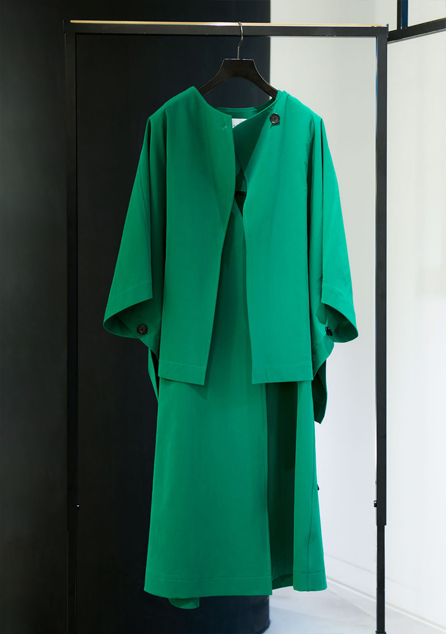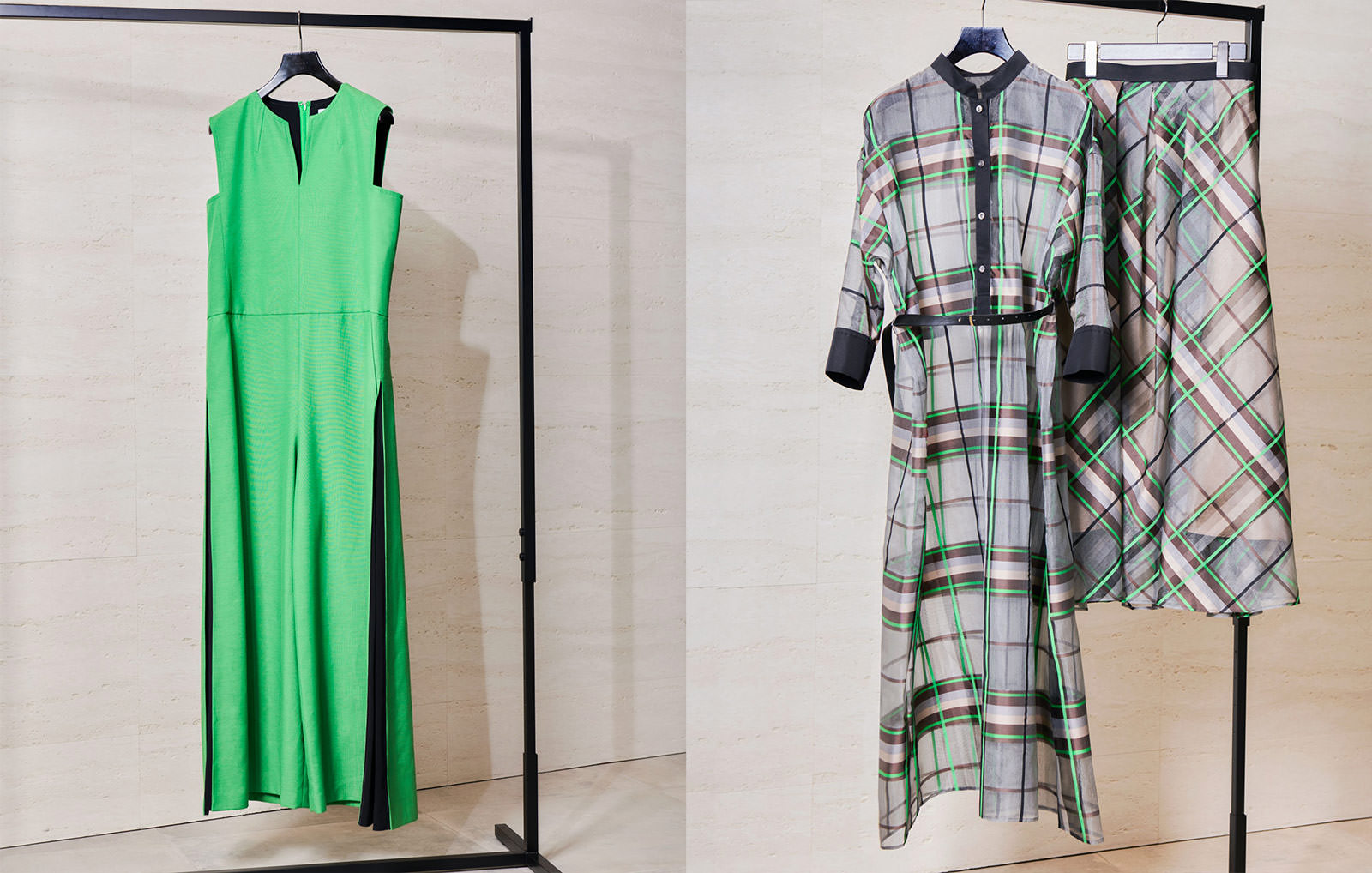 - そんな店内で一際目を惹くのが、彩り豊かなスプリングカラーのウエア群。3月8日の国際女性デーに合わせ、自分らしく、新しく純真で豊かな生活を願う女性のために作られたというアイテムの数々は、包み込むようなイエローや新緑のグリーンなど、華やかな色合いが素敵です。春らしく、気持ちも明るく。そんなムードにあふれたおすすめの5点を直井智子店長と、スタッフの趙瑩さんに紹介してもらいました。