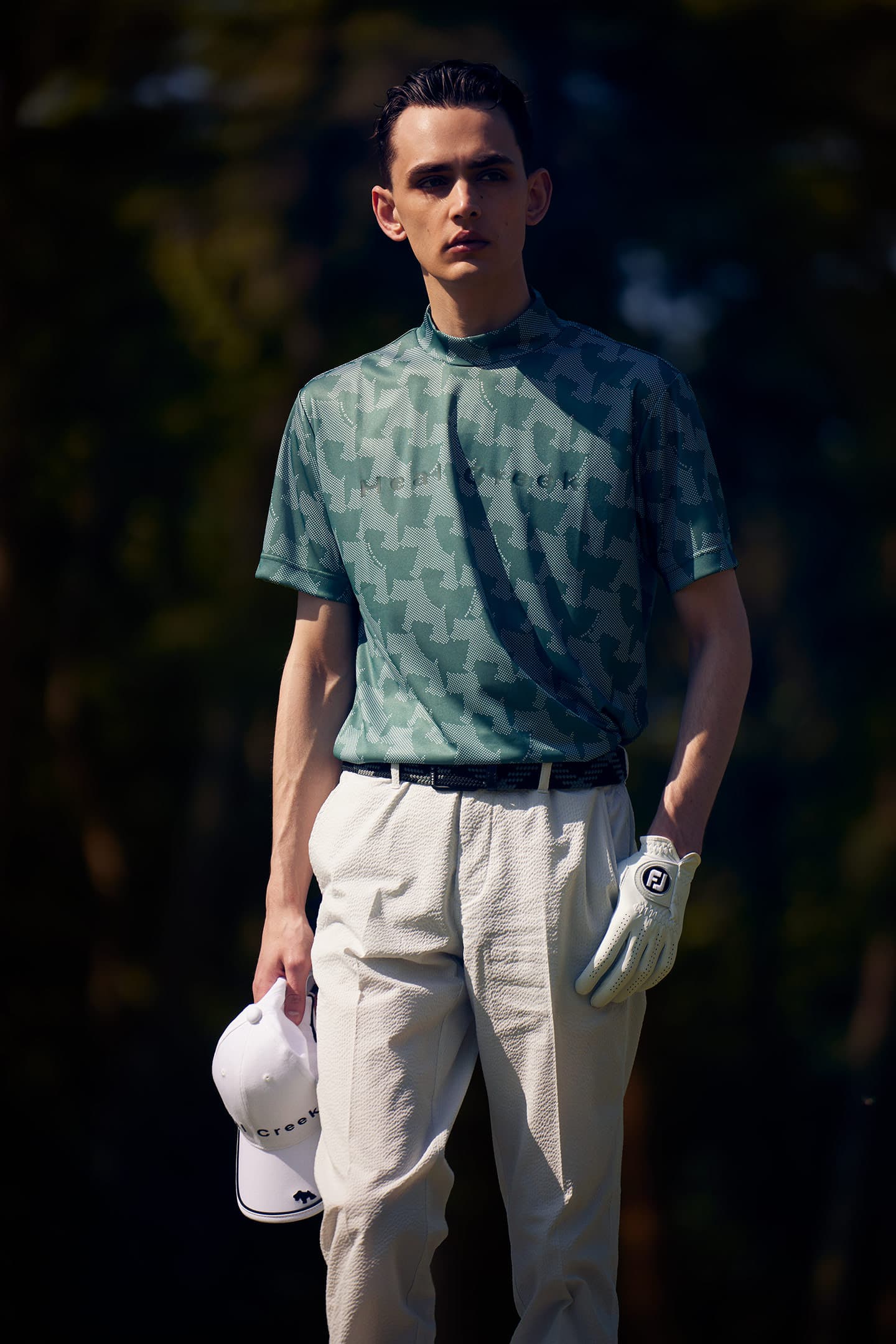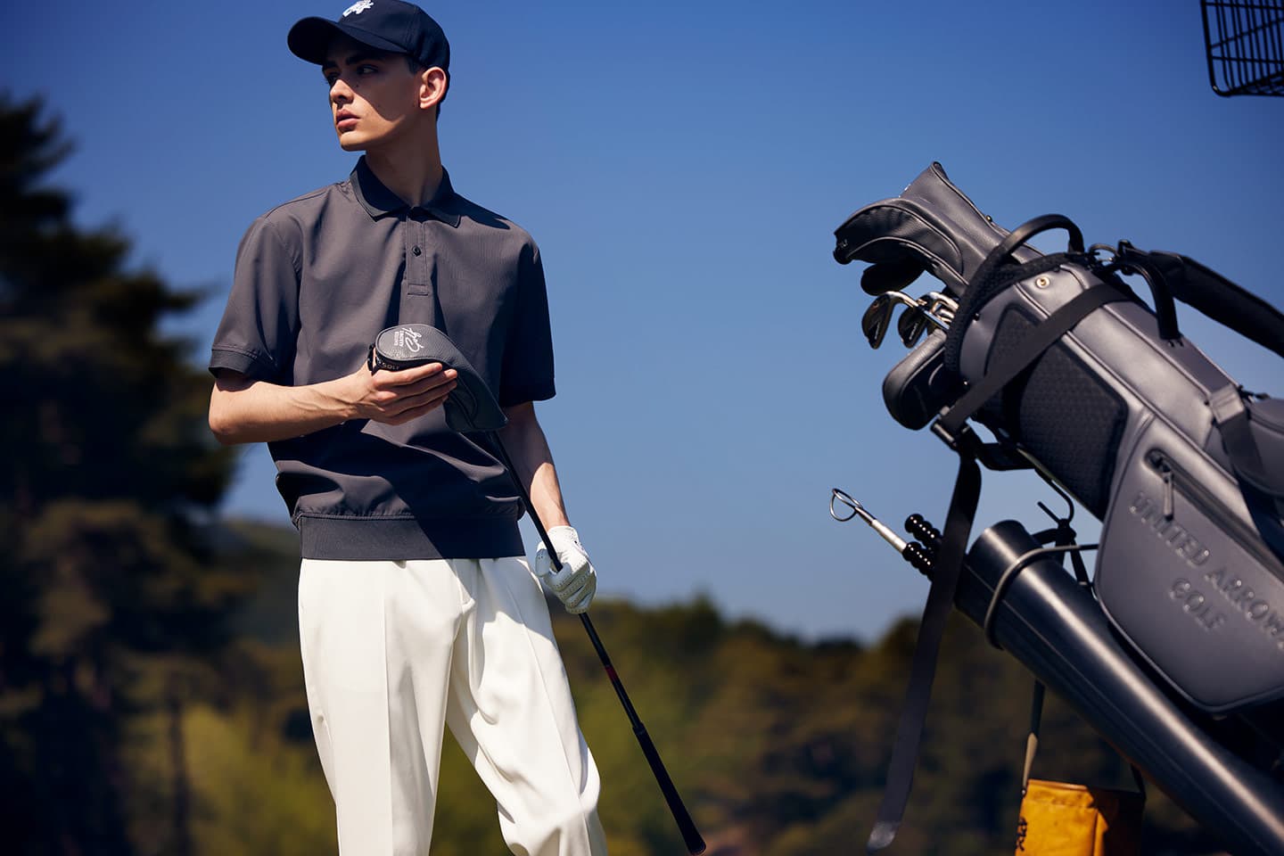 - H : ゴルフを一緒にプレイするメンバーや、ゴルフ場によって着分けています。ゴルフブランドに限らずスポーツブランドはロゴアイテムが多くなってしまうので、スタイリングがうるさくならない様にシンプルなウェアを選ぶことが多いです。とは言え、なるべく人と被らないものを着たいので海外(特にアメリカでは、ここ数年面白いゴルフブランドが増えています)から取り寄せたり、大阪のCLUBHAUS(海外からのセレクトやオリジナルまで取り扱うセレクトショップ)などで購入することが多いです。これからの時期は暑さ対策がポイントになるので、快適にゴルフができる機能性重視のウェアを選んでいます。