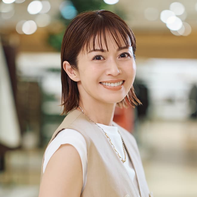 - キャップを試着したときには「エストネーションの小物のセレクトもとても好きなんです。私は帽子をかぶることが多いんですが、以前このお店で買い物をしたとき、気に入った帽子の色が選びきれなくて、色違いで買ったこともありました」という思い出話も披露してくれました。きっちりした大人の装いからカジュアルまで。そのラインナップの広さもショップの魅力なのです。