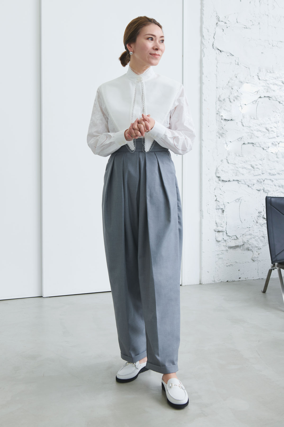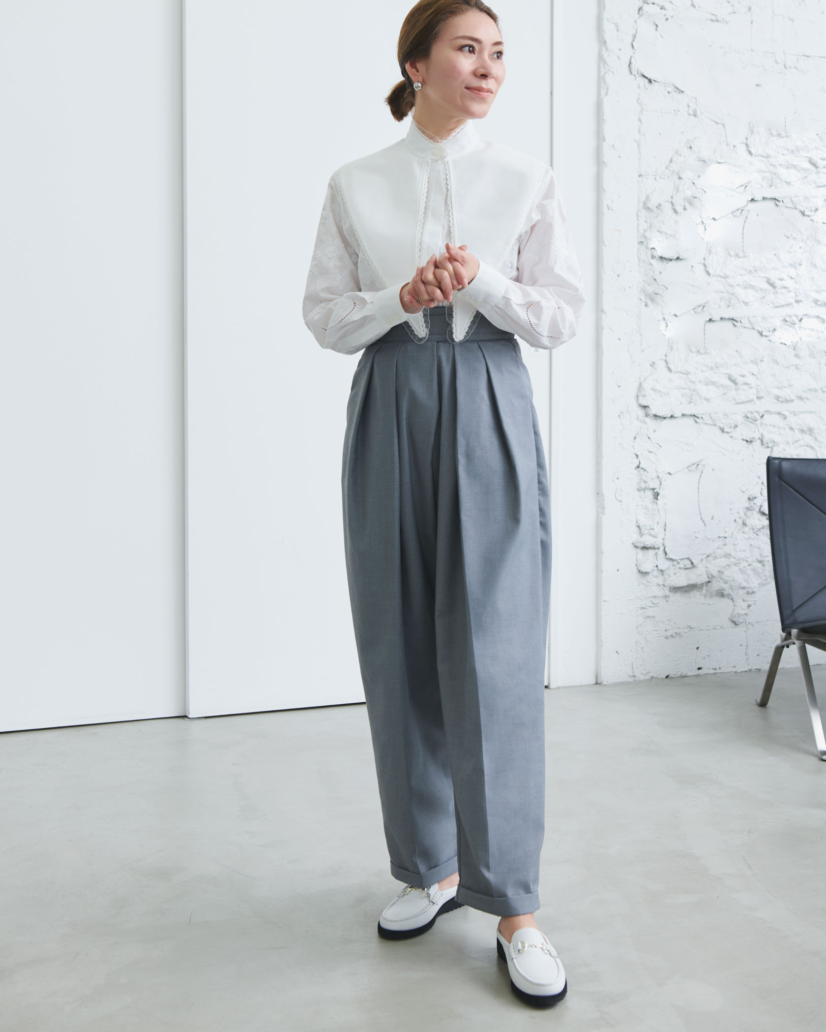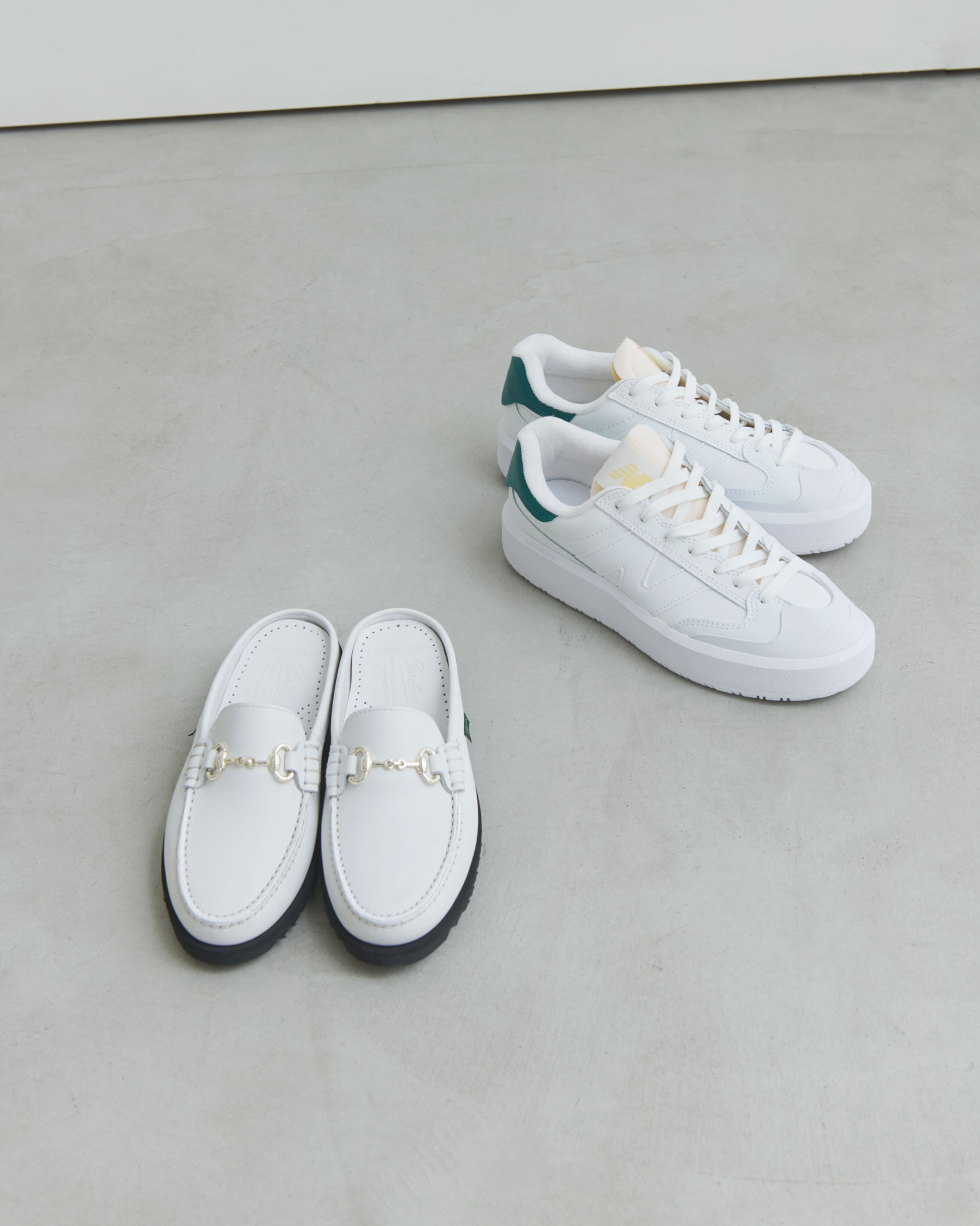 - O : サンダルからバレエシューズ、スニーカー、ブーツまで、白のアイテムがとても多いです。私の中でスタイリングは“洋服”、“靴”、“バッグ”を合わせて3色でまとめる事がルールなんですが、合わせる靴がないと感じた時に足元に白を選ぶと全体のバランスを崩さずに、抜け感が作れると思っています。白は無色透明という捉え方もできるので、1色と数えなくても大丈夫。私の3色ルールを唯一覆せる色として、とても重宝しているので白い靴のバリエーションはすごく多いです。
