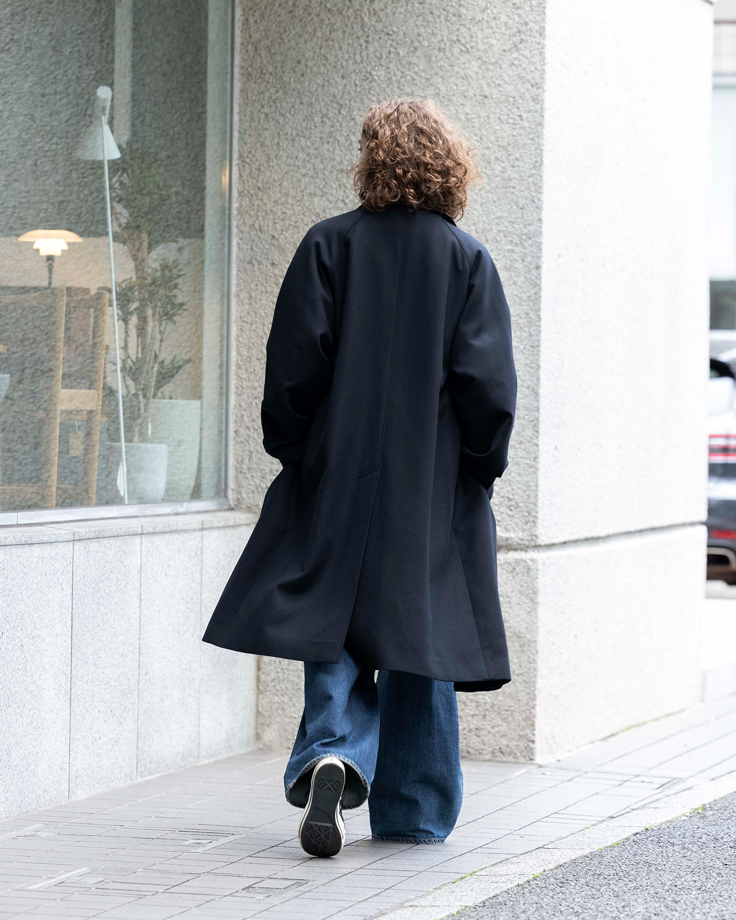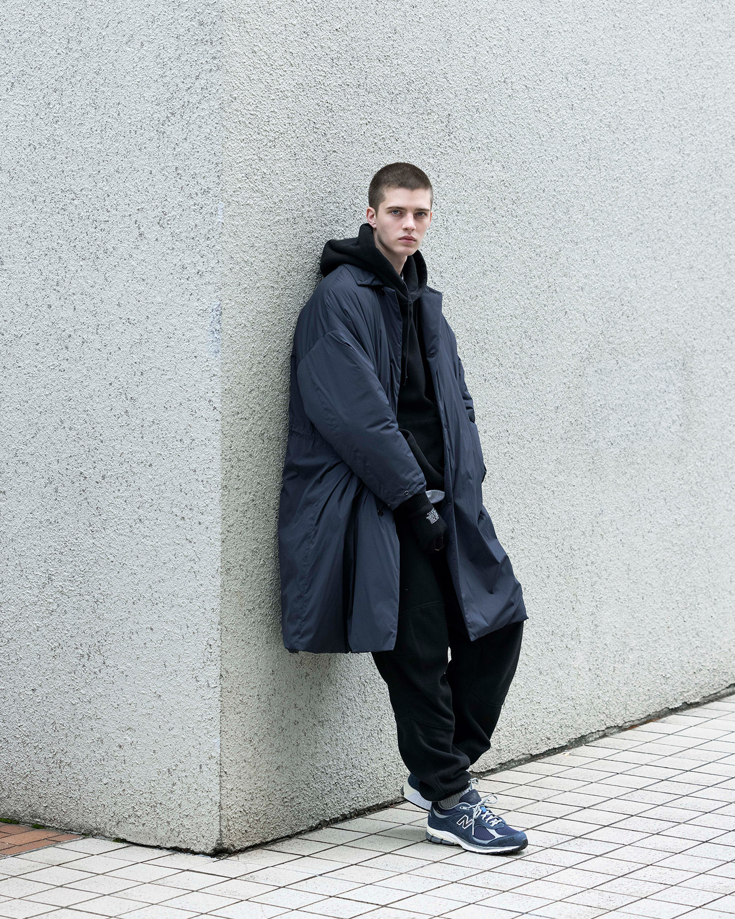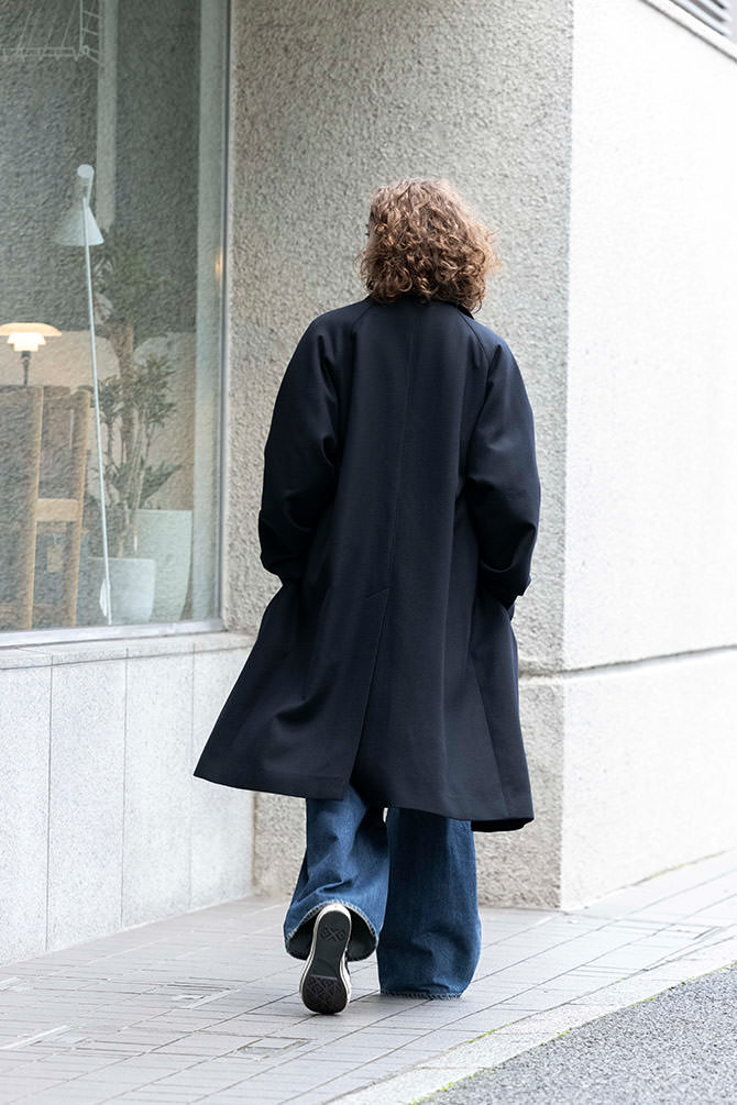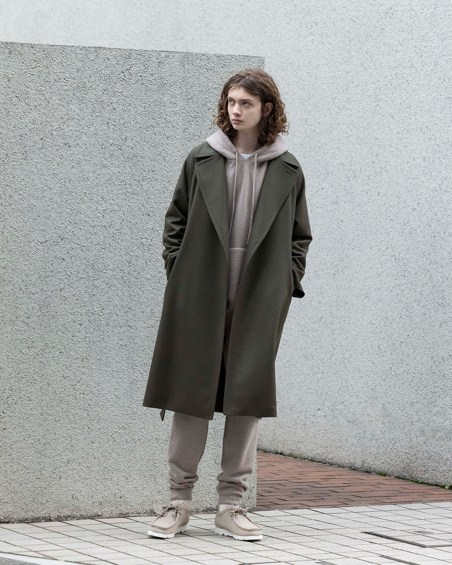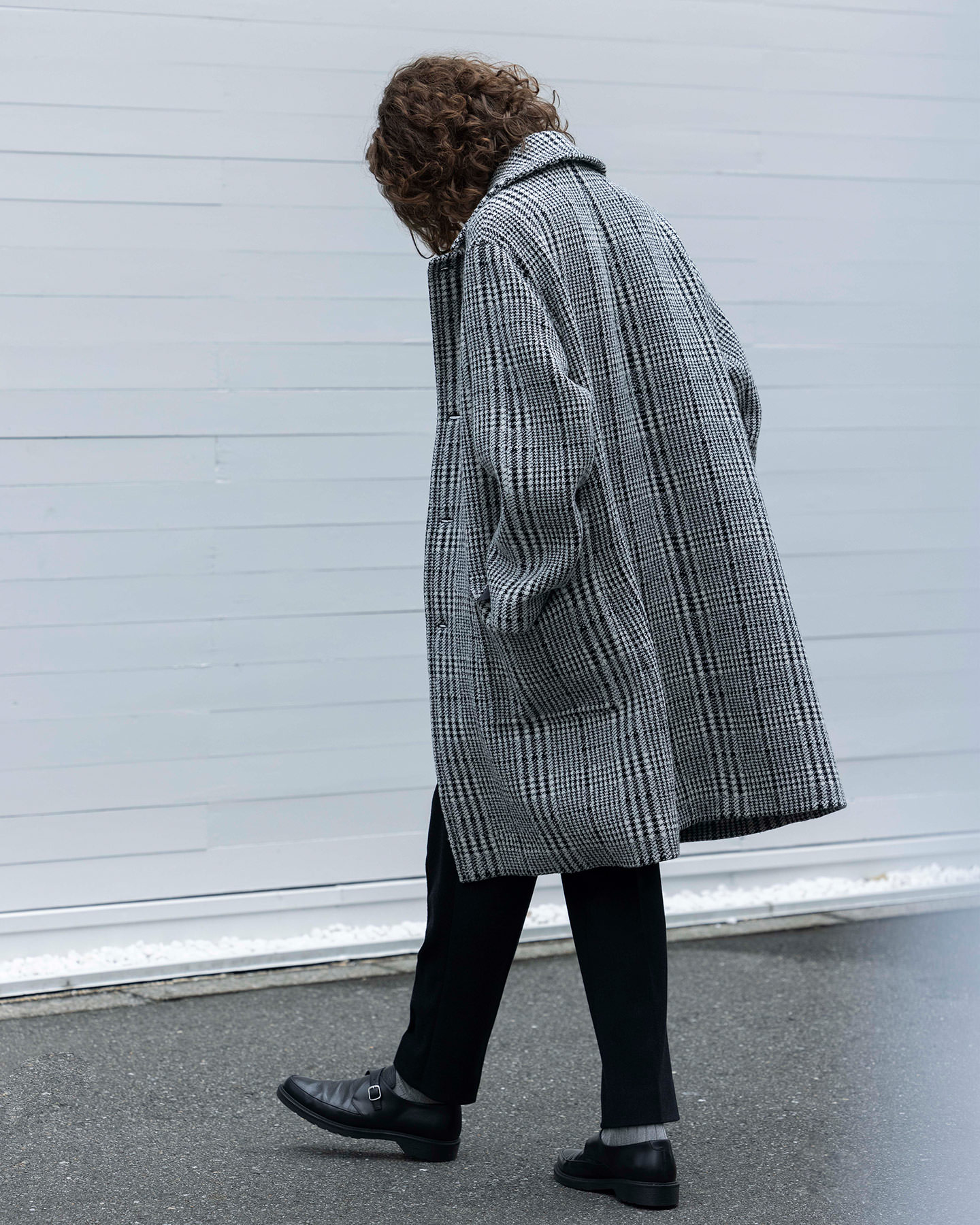 - W : コートって着るだけでちょっとした緊張感があるじゃないですか。“コートを着ている”というムードがすごく好きなんですよね。根底には“コートを着てる男ってかっこいいじゃん”という想いがあるんです。今回はジェントルマンでカッコつけるというよりは、コートをいい意味にラフに着られるスタイリングにしてみました。コートを着ると、裾をはためかせてちょっと歩きたくなりますよね。“コート着てちょっと街に出かけようよ”、という気持ちでスタイリングを組みました。