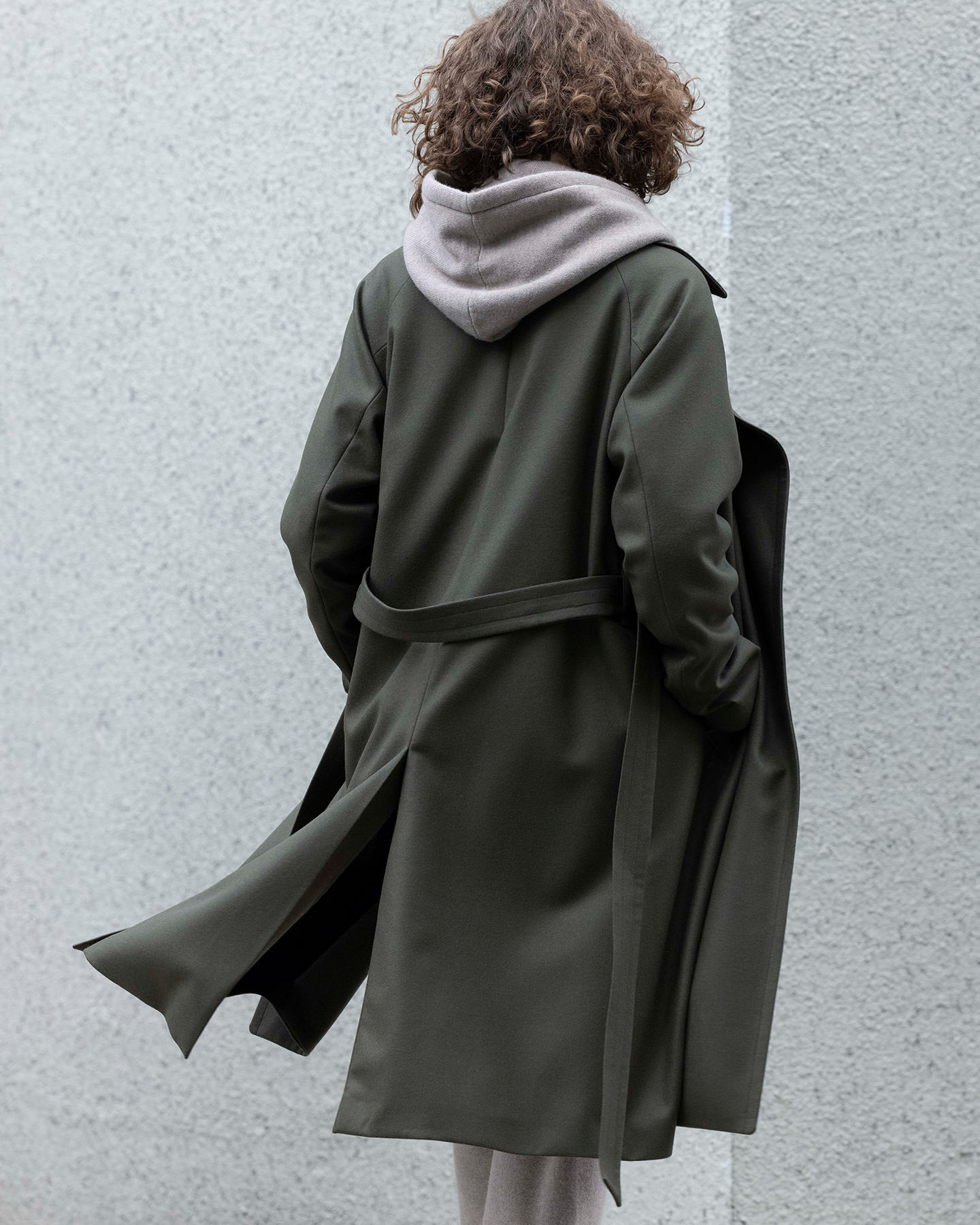 - W : そうなんです。六本木ヒルズに来る方々は車で移動する方も多いとは思うんですが、朝コーヒーを買いに行くとか、散歩するとか。そういう時にサラッとコートを着て、街を歩くというのは、大人の男性としていいなと思っています。