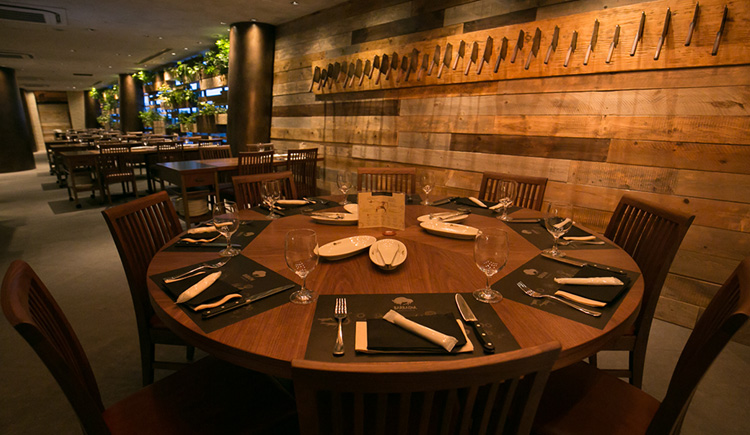 焼きあがったばかりの大きな塊牛肉を携えた、パサドールと呼ばれる専門のスタッフが各テーブルを回りゲストのリクエストに応じて切り分ける、ブラジル式バーベキュー「シュラスコ」の専門店。日本国内でこのスタイルのお店は東京に数店と大阪にしか存在しないという希少な存在。「お肉をおなかいっぱい食べたい!」そんな気分を確実に満たしてくれます。個室には専用のグリルが設置されているのでシェフのプライベートテーブルに招かれたよう。スタッフもフレンドリーで店内はラテンムード満点、明るいムードで食事を盛り上げてくれます。