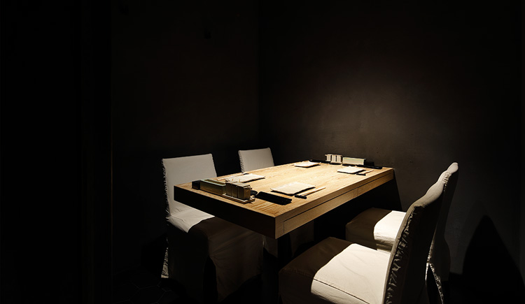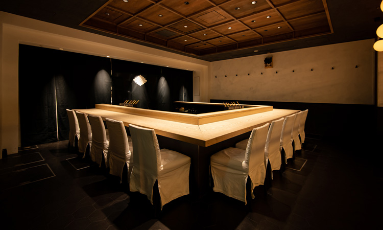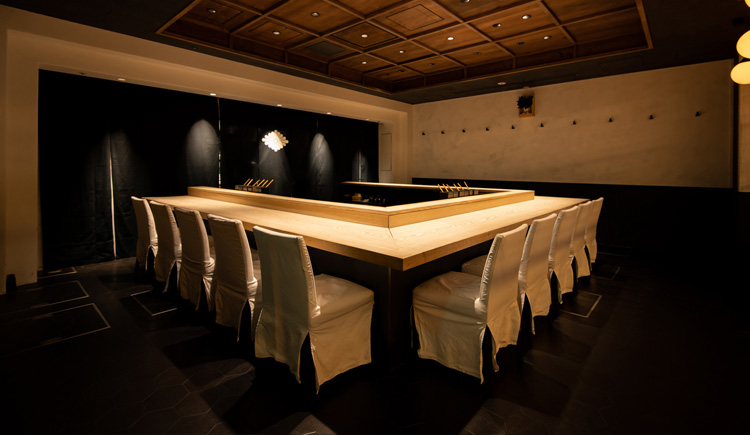 コの字型になったカウンターの中には和歌山・紀州備長炭を使った2つの焼台が設置されています。店舗奥の席が焼き台から少し離れたスペースになるので、煙を避けたいときにはこちらの指定をお勧めします。